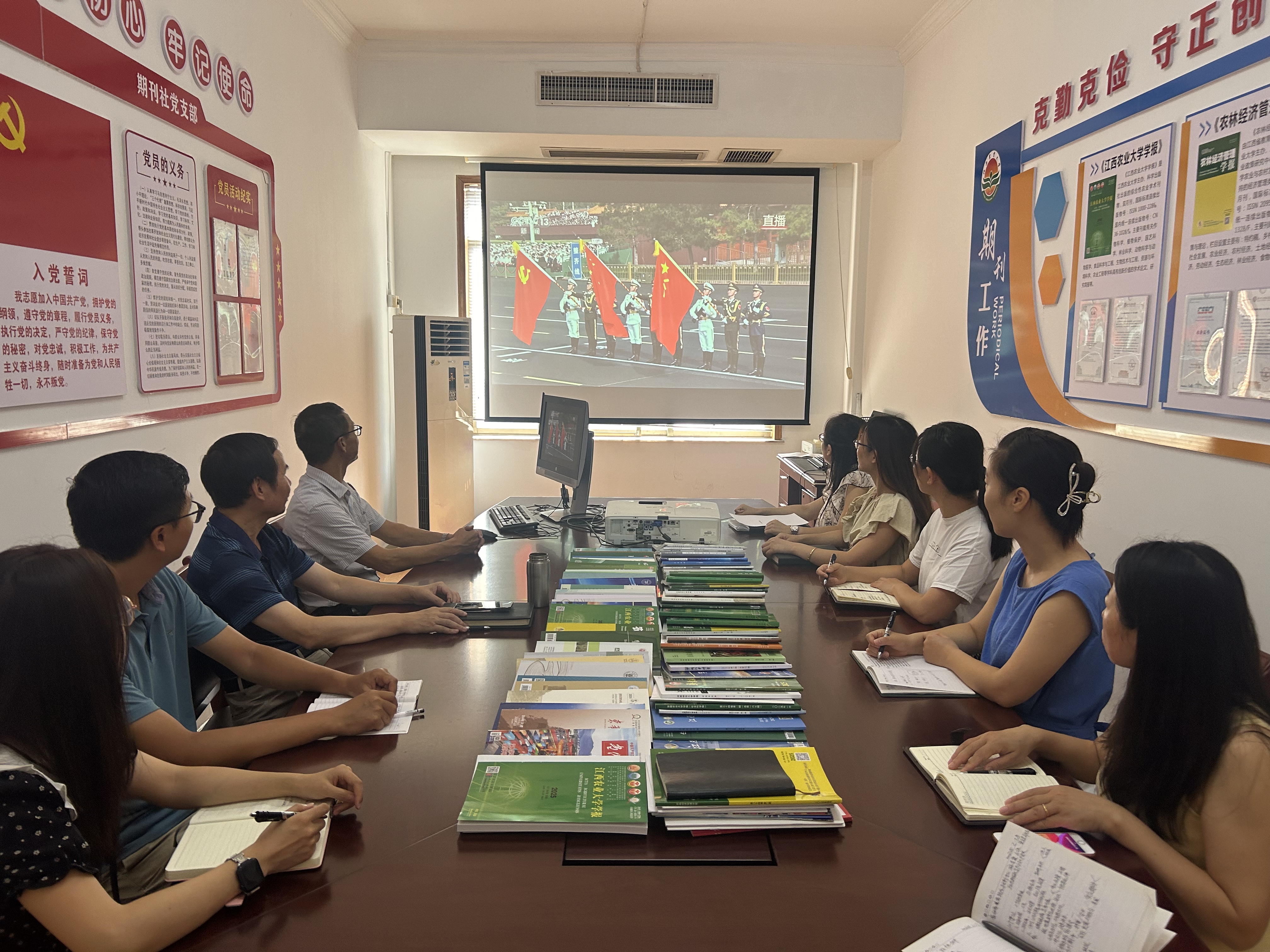 9月3日上午,纪念中国人民抗日战争暨世界反法西斯战争胜利80周年大会在北京天安门广场隆重举行,中共中央总书记、国家主席、中央军委主席习近平发表重要讲话并检阅部队。期刊社党支部全体党员踊跃收听收看大会直播盛况,共同铭记历史、缅怀先烈、珍爱和平、开创未来。