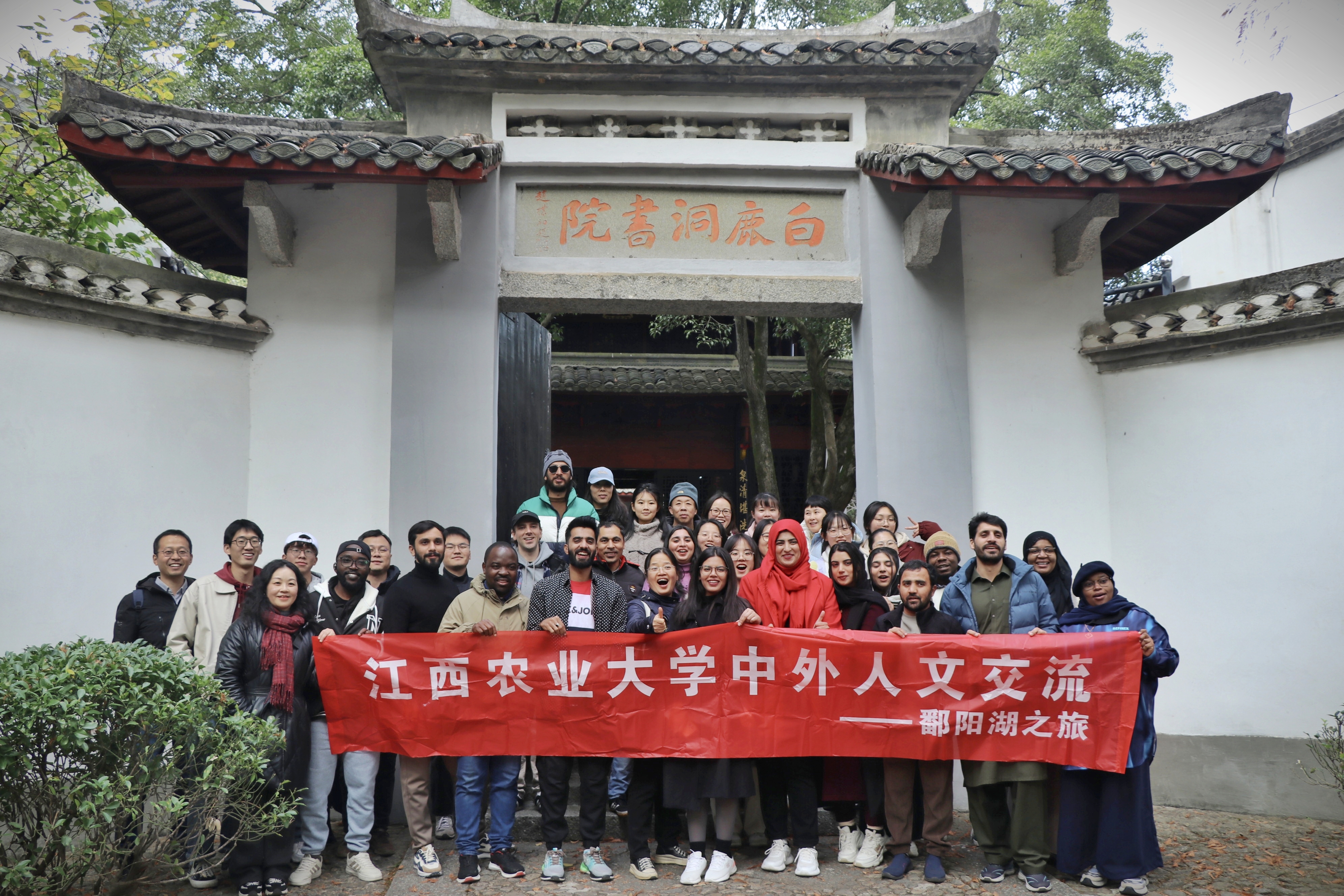 活动中,带队老师先后带领中外学生参观了观音桥、白鹿洞书院和吴城候鸟保护区。在白鹿洞书院景区,中外学生参观了贤书院、朱子祠、白鹿书院等历史建筑,了解了书院的历史和文化,走过状元桥,在孔子画像前追思先贤,体验古代书院的教学氛围和文化传承。在鄱阳湖湿地候鸟展示馆内,中外学生通过生动的展览和详细的解说,深入了解了候鸟的迁徙路线、生活习性以及保护现状。随后,同学们来到了吴城大湖池观鸟点和风景壮丽的望湖亭。在这里,他们举目远眺,只见湖面波光粼粼,候鸟成群,时而掠过水面,时而展翅高飞,构成了一幅幅美丽的生态画卷。同学们被眼前的景象所震撼,纷纷驻足拍照留念,并感叹大自然的神奇和美丽。这是他们第一次如此全面地了解候鸟,对自然界的奇妙和生命的顽强深感震撼。来华留学生同学校师生进行互动交流,提问解惑,分享自己的感受和见解。