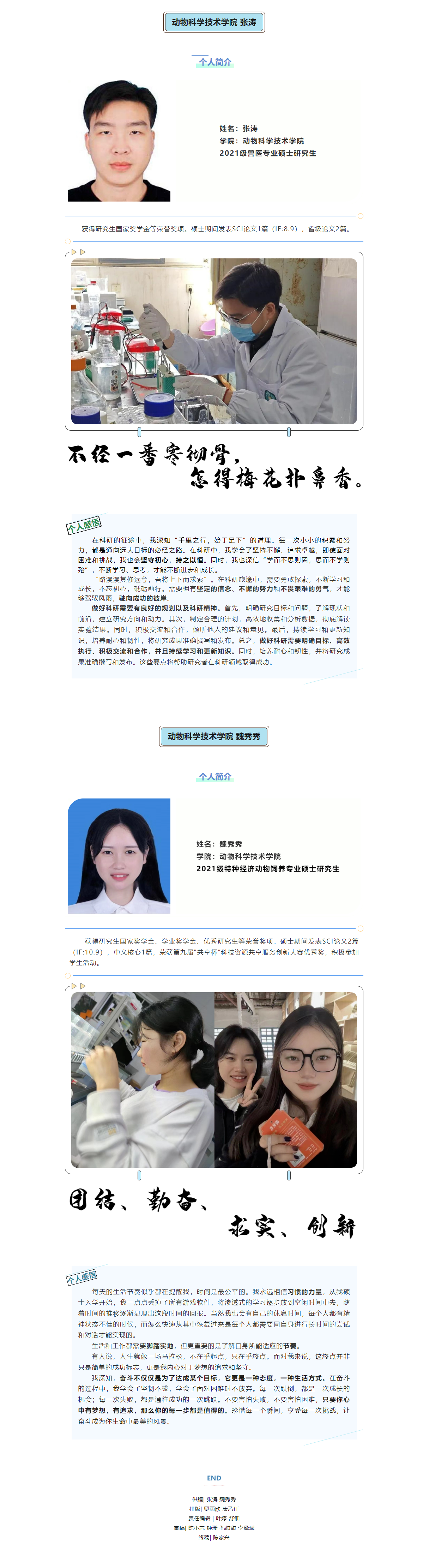 2022-2023学年研究生国奖获得者——动科院张涛、动科院魏秀秀