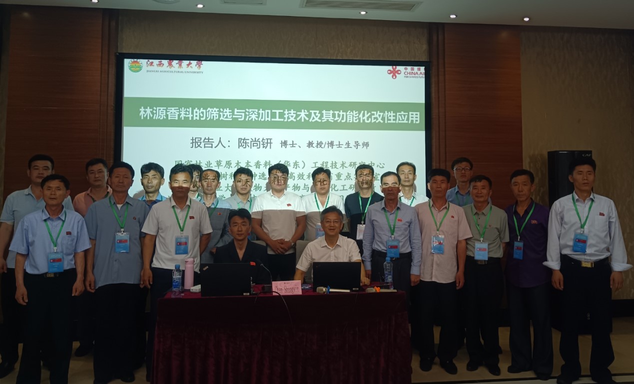 培训班上,陈尚钘教授首先介绍国家林业草原木本香料(华东)工程技术研究中心的平台建设、研究团队、工艺研发与产品创新的情况。随后,从林源香料筛选、精深加工技术,以及功能化改性应用等方面,围绕林源资源筛选标准到创新开发技术,详细讲解了林源香料的天然的碳一属性、林源香料的作用、天然等同香料的制备与生物活性等内容,并深入分析了林源香料的原料机械化采收、高效提取分离工艺与深加工产品研发的历史、现状与发展趋势。培训过程中,耐心细致回答了朝方学员的问题,与朝方学员进行深入探讨了林源香料的前景与未来发展趋势。