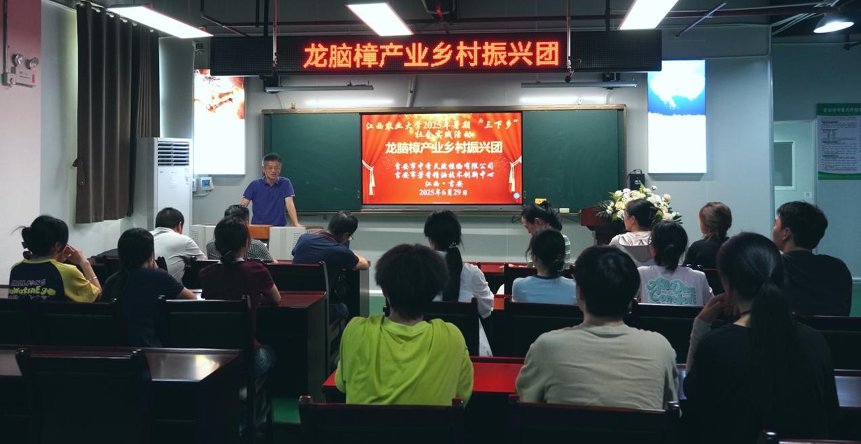为助力乡村振兴,深化产学研融合。6月29日-7月10日,中心副主任、植物天然产物与林产化工研究所副所长陈尚钘教授等一行带领江西农业大学“三下乡”社会实践营队--龙脑樟产业乡村振兴团前往吉安市中香天然植物有限公司,开展“三下乡”实践活动,中心范国荣研究员、彭大勇博士和全体社会实践营队队员参加了活动,以专业知识赋能产业发展,用青春行动书写乡村振兴答卷。学院党委副书记刘彩云参加了活动,吉安市中香天然植物有限公司董事长罗秋根,研发总监张华锦热情接待了“三下乡”人员一行。