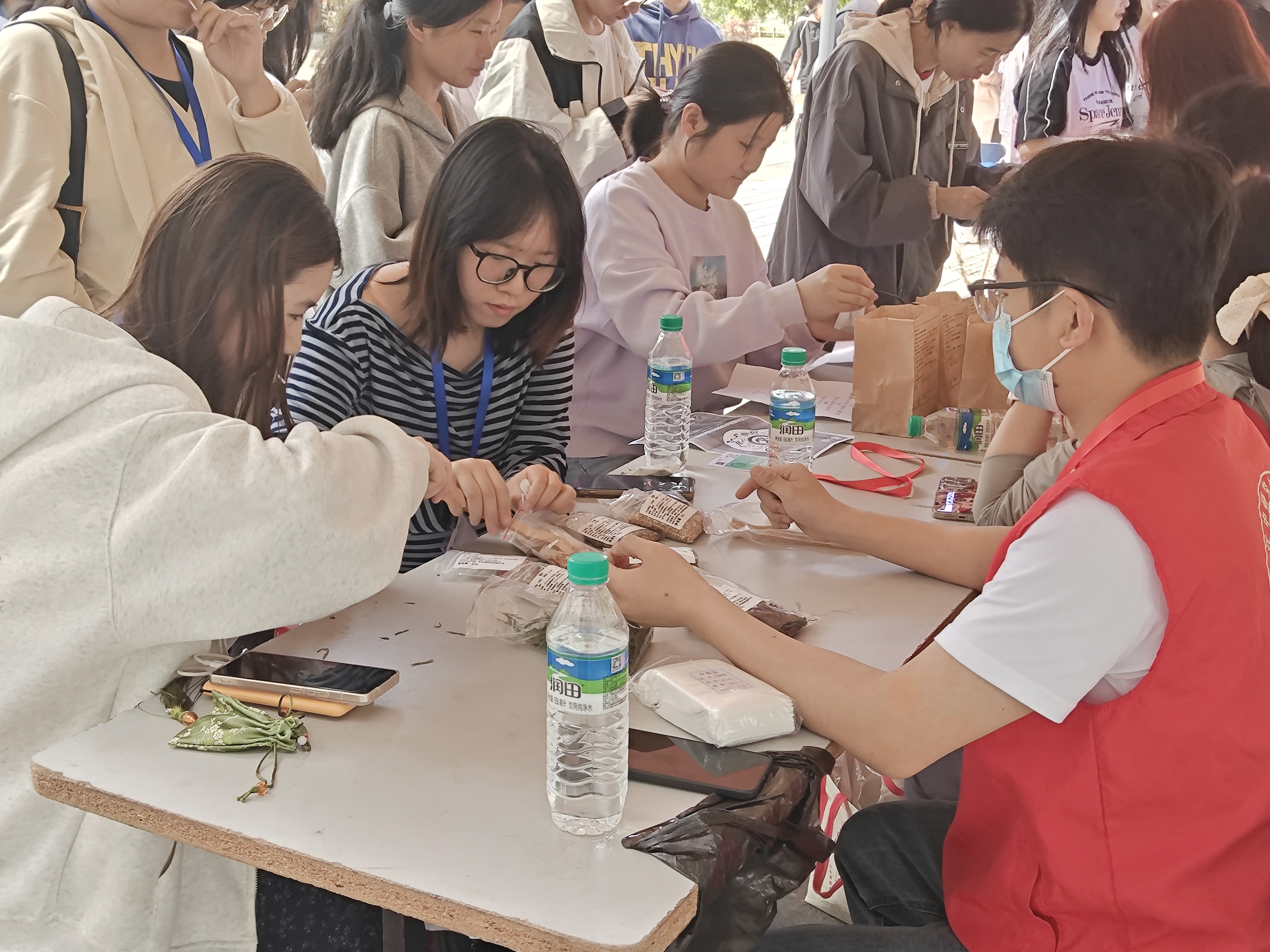 志愿者们通过生动的讲解和标准的示范,向现场师生展示了在紧急情况下如何正确地进行心肺复苏及海姆立克急救,以挽救宝贵的生命。许多师生在志愿者的指导下,亲自上手实践,感受急救操作的要领。在志愿者的指导和讲解下,大家根据个人体质,亲手对薄荷、艾叶等十余种药材进行自由搭配,共制作香囊、中药茶饮包300余件。制作过程中,师生们不仅体验了中医药文化的魅力,也加深了对中医药文化的理解和认同。师生们了解了茯苓、山药等中药材在饮食中的应用,并品尝这些融合了中药材的美食,不仅感受到了中医药文化的博大精深,也体会到了中医药在日常生活中的广泛应用。