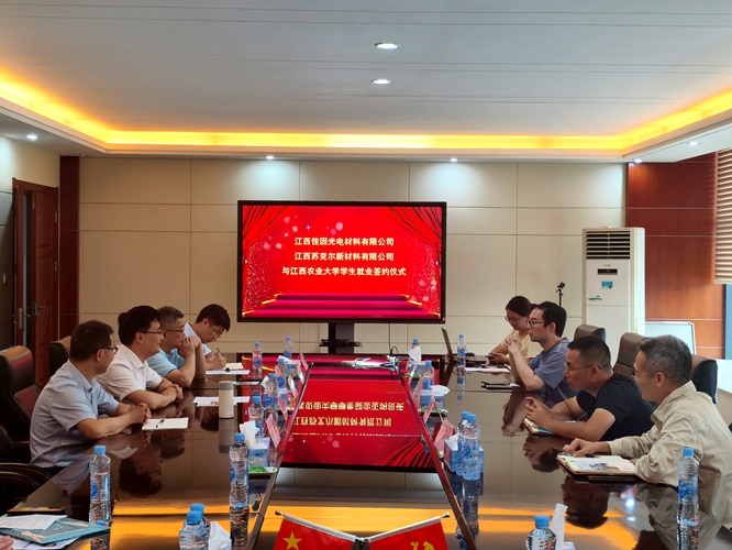 为进一步深化校企合作,为毕业生挖掘更多岗位资源,助力2025届毕业生高质量就业,6月11日下午,副校长张高亮带领化学与材料学院求职毕业生前往江西佳因光电材料有限公司及江西苏克尔新材料有限公司开展“带生访企促就业”行动,招生就业处与化学与材料学院有关负责同志一同参加访企。