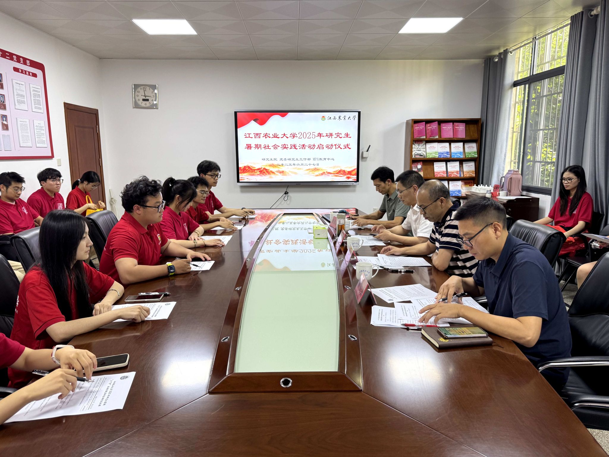 6月27日下午,江西农业大学2025年研究生暑期“三下乡”社会实践活动启动仪式在致达楼二楼会议室举行,副校长王文君出席启动仪式,研究生院(党委研究生工作部、MPA教育中心)相关人员及暑期“三下乡”研究生实践营队队员代表参加本次活动。