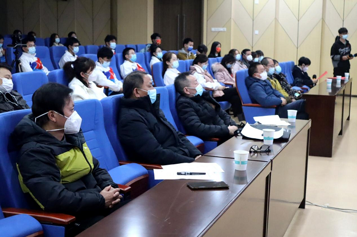 观看完视频,院党委书记刘纯青从1998年抗洪救灾故事为切入点,解读了《为了谁》歌曲创作背景,深刻阐述了中国共产党为人民服务的初心和使命。以毛泽东为人民服务的例子引导大家对“为人民服务”这一理念的深层次理解。她还引用了邓小平“三个有利于”标准、江泽民“三个代表”重要思想、胡锦涛“为人民服务到以人为本的科学发展观”、习近平“我将无我,不负人民”等内容,并以汶川地震、新冠抗疫等事迹,生动诠释党为人民服务的宗旨和目标。